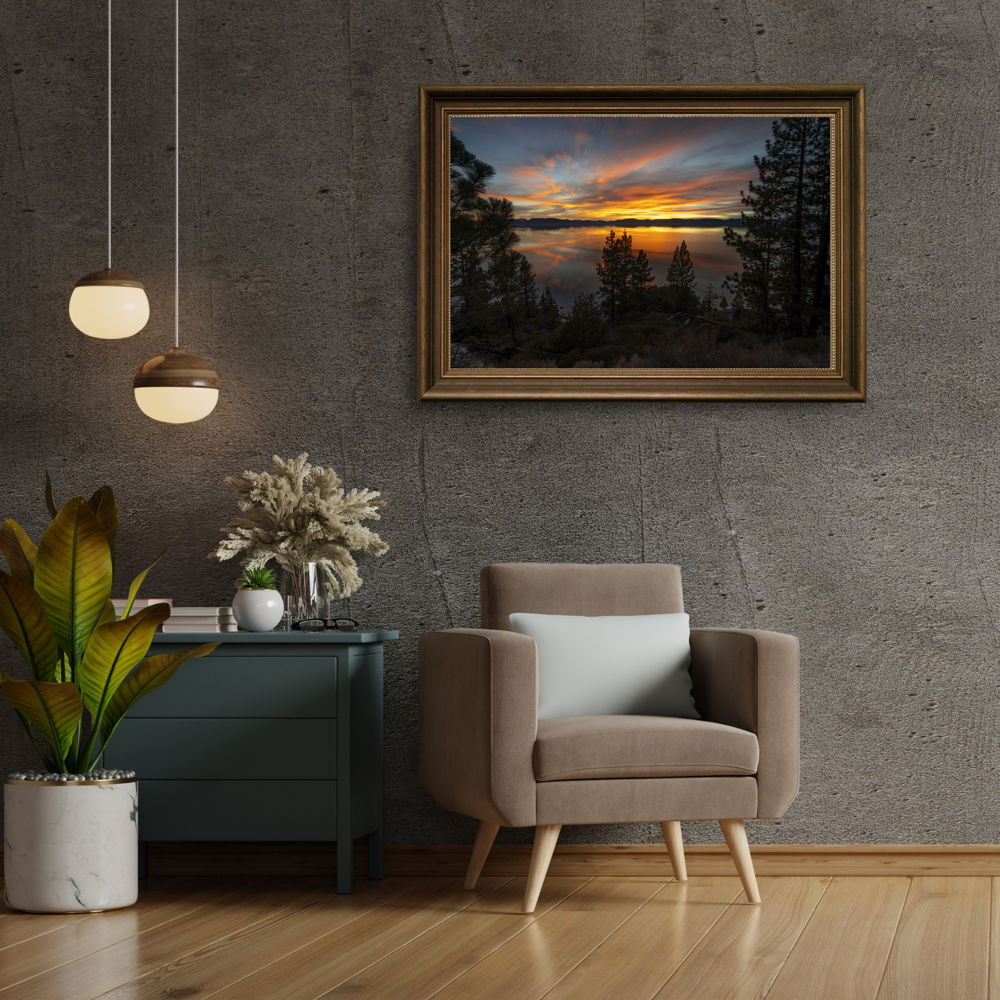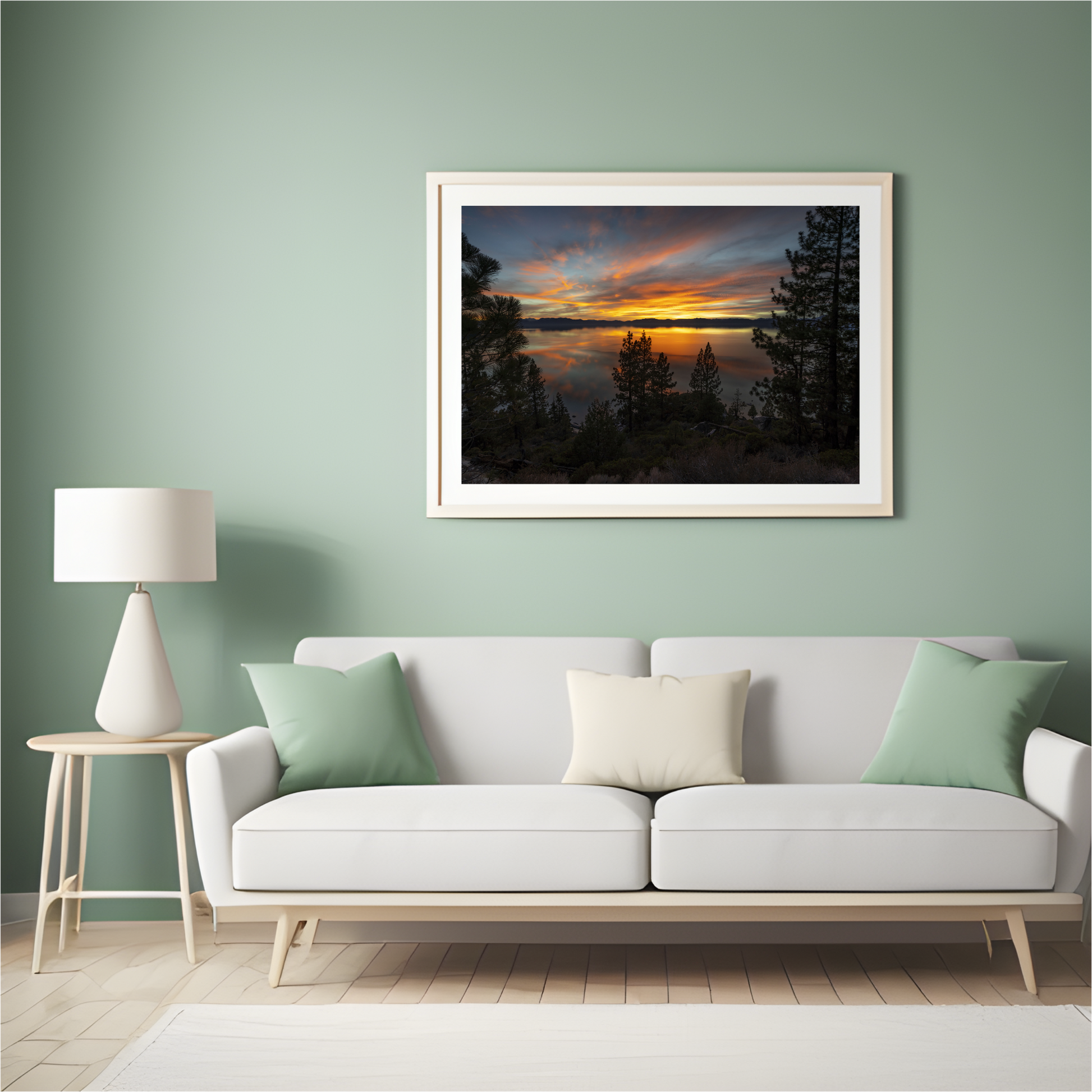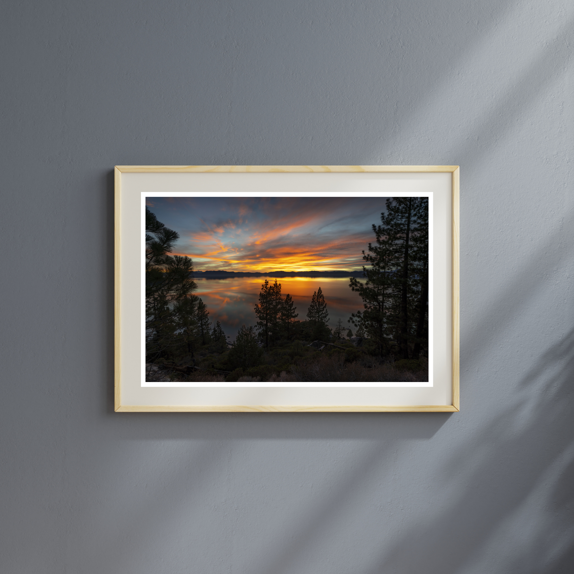 Fine art photo of sunset at Lake Tahoe. This one was a lucky break because we'd only just arrived into the Nevada side of Lake Tahoe as the sun was beginning to set, so we quickly found a roadside pullover and set up our tripod!
